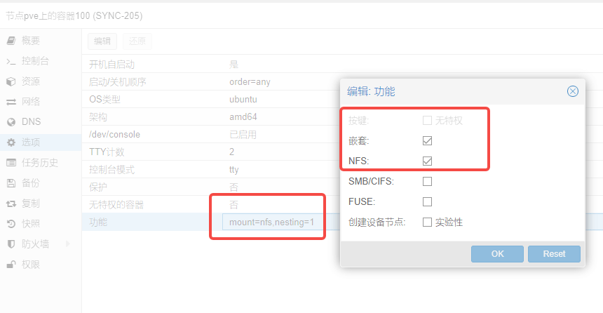 在 Proxmox Shell 中操作让 LXC 支持 NFS: